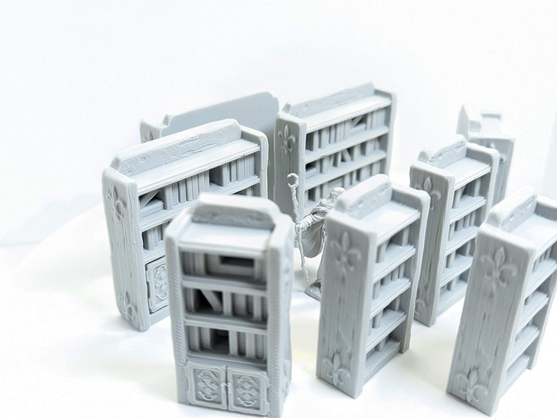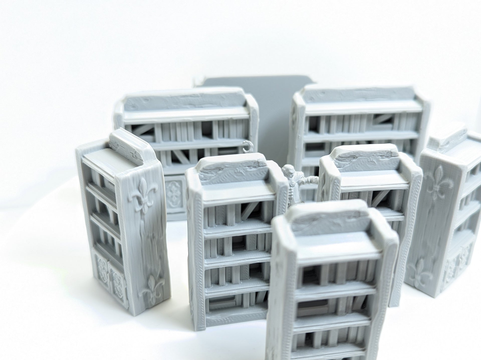 Included - 5 Small bookshelves, 3 Large bookshelves